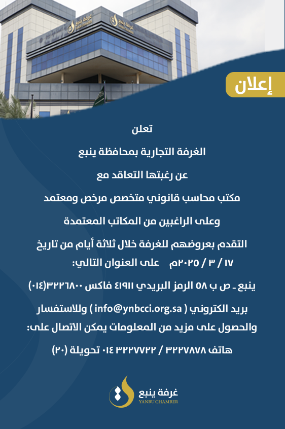 اعلان الرغبة بالتعاقد مع مكتب محاسب قانوني مرخص ومعتمد